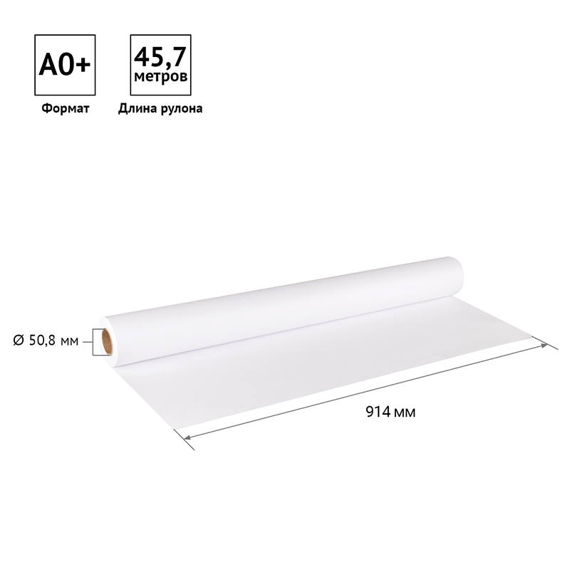 Размер бумажного полотна составляет 914 мм (36 in), что соответствует формату А0+. Длина рулона - 45,7 м (150 ft). Внутренний диаметр втулки - 50,8 мм. Плотность бумаги 90 г/м², белизна по CIE 146%. Для защиты от влаги и поддержания нормального уровня влажности рулон упакован в полиэтиленовую пленку. Размеры короба - 93,4×11,2×11,2 см