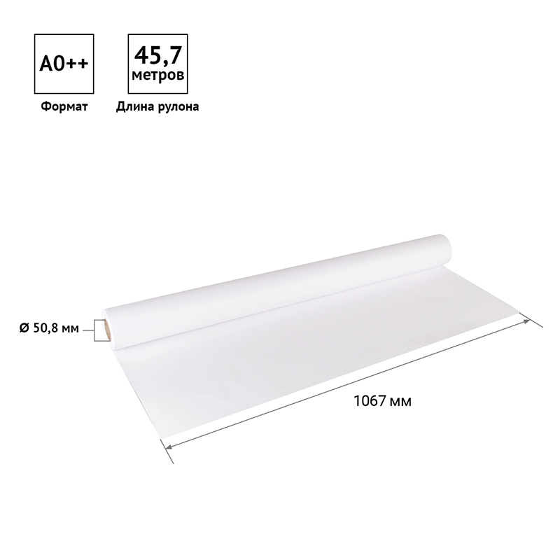 Размер бумажного полотна составляет 1067 мм (42 in), что соответствует формату А0++. Длина рулона - 45,7 м (150 ft). Внутренний диаметр втулки - 50,8 мм. Плотность бумаги 90 г/м², белизна по CIE 146%. Для защиты от влаги и поддержания нормального уровня влажности рулон упакован в полиэтиленовую пленку. Размеры короба - 108,8×11,2×11,2 см