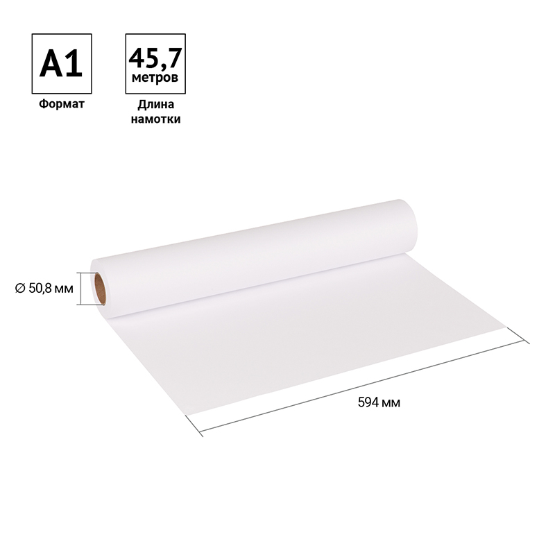 Размер бумажного полотна составляет 594 мм (23,4 in), что соответствует формату А1. Длина рулона - 45,7 м (150 ft). Внутренний диаметр втулки - 50,8 мм. Плотность бумаги 90 г/м², белизна по CIE 146%. Для защиты от влаги и поддержания нормального уровня влажности рулон упакован в полиэтиленовую пленку. Размеры короба - 63×11,2×11,2 см