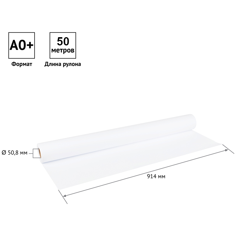Бумага широкоформатная OfficeSpace без покрытия. Предназначена для печати чертежей, линейной графики, схем и других видов технической документации. Идеальна для печати черно-белой, а также отдельных видов цветной графики без передачи полутонов. Размер бумажного полотна составляет 914 мм (36 in), что соответствует формату А0+. Длина рулона - 50 м (164,04 ft). Внутренний диаметр втулки - 50,8 мм. Плотность бумаги 80 г/м², белизна по CIE 146 %. Совместима со струйными черно-белыми плоттерами и принтерами большинства известных производителей: НP, Сanon, Еpson, Xerox, Kyocera, Mimaki, Philips, RICOH, Samsung и др. Для защиты от влаги и поддержания нормального уровня влажности рулон упакован в полиэтиленовую пленку. Размеры короба - 91,6×10×10 см. • Ширина: 914 мм; • Плотность: 80 г/м2; • Цвет: белый; • Длина намотки: 50 м.