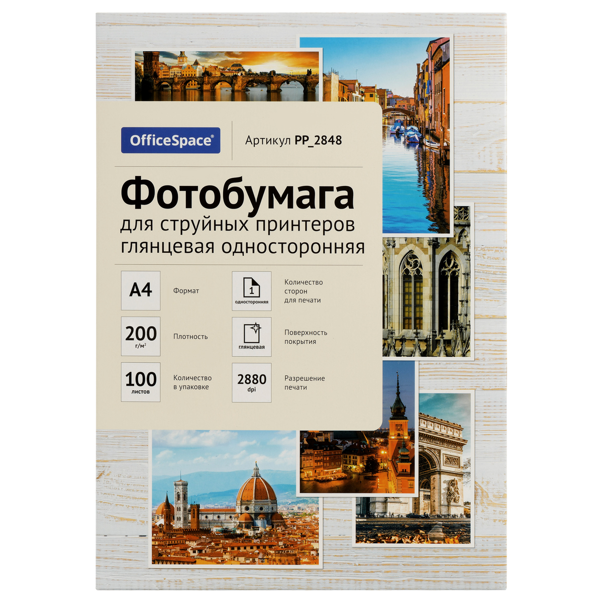 Фотобумага А4 для стр. принтеров OfficeSpace, 200г/м2 (100л) глянцевая односторонняя 363309