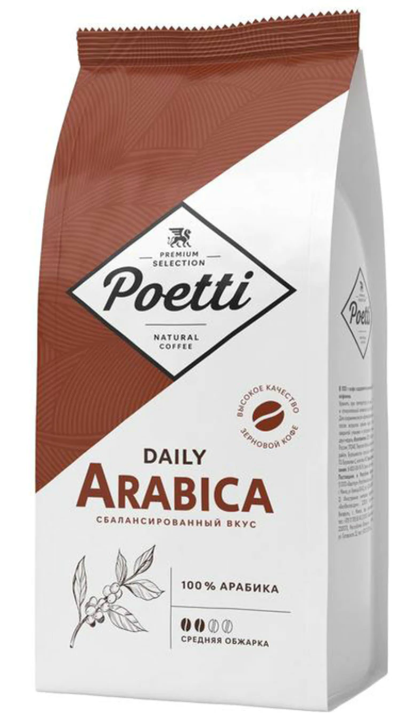 Кофе в зернах Poetti "Daily Arabica", вакуумный пакет, 1кг