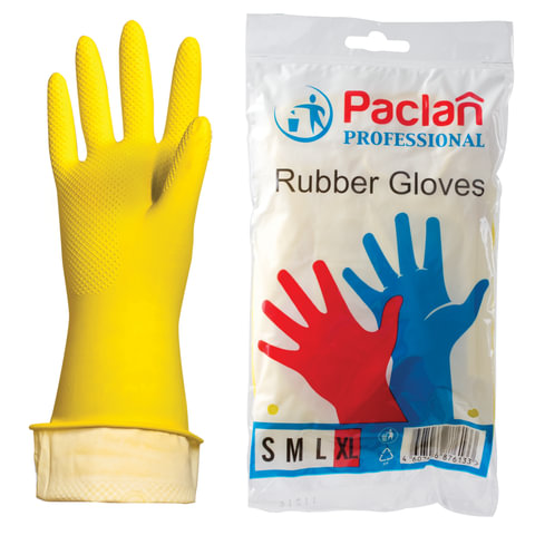 Перчатки хозяйственные латексные, х/б напыление, размер XL (очень большой), желтые, PACLAN "Professional"  602491