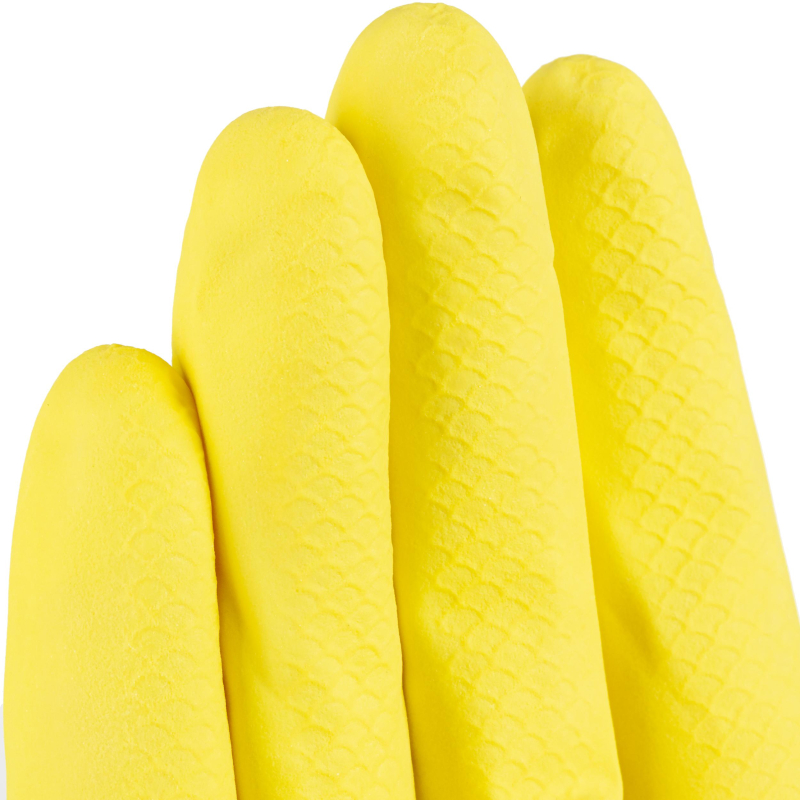 Перчатки хозяйственные латексные Luscan с внутренним хлопковым напылением, размер 8 (M). Вес пары: 30 г. Манжета - закатанный край. Текстурированная поверхность на пальцах и ладони для лучшего сцепления с поверхностью. Внутреннее хлопковое напыление способствует более легкому надеванию перчаток на руки. Закатанный край манжеты для фиксации перчатки на запястье также дополнительно усиливает прочность к разрывам и защищает от проникновения капель воды в перчатку. Предназначены для защиты рук от вредного воздействия агрессивных моющих и чистящих веществ во время уборки, стирки, мытья автомобиля, садовых работ. Поставляются в упаковке с европодвесом. Количество в упаковке 1 пара. Количество упаковок в транспортном коробе 240. Цвет на изображении товара в интернет-магазине или в печатном каталоге может отличаться от оригинала из-за особенностей цветопередачи монитора.