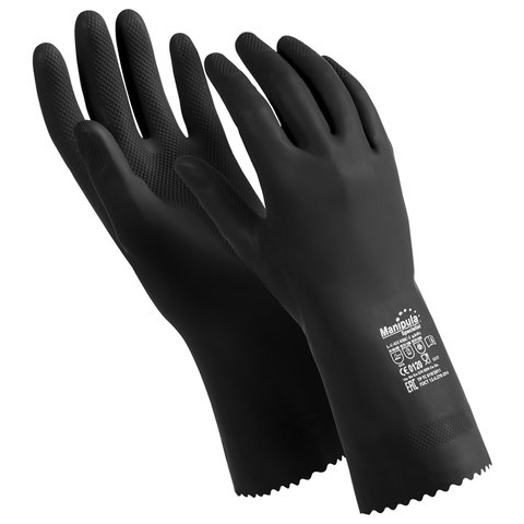 Перчатки латексные MANIPULA "КЩС-2", ультратонкие, размер 9-9,5 (L), черные, L-U-032/CG-943 605831