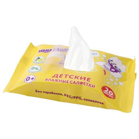 Салфетки влажные 20 шт., для детей ЮНЛАНДИЯ, универсальные, очищающие, 129895