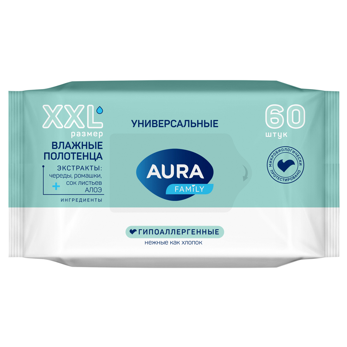 Полотенца влажные Aura "Family", 60шт., для всей семьи, 371864