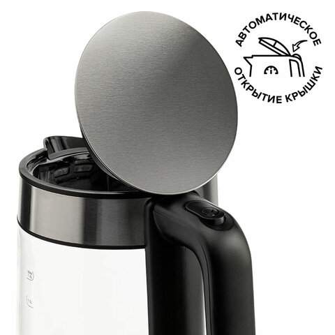 Электрический чайник SCARLETT SC-EK27G101 объемом 1.8 л оснащён автоматической системой открытия крышки.
