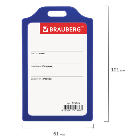 Вертикальный бейдж BRAUBERG для именной карточки предназначен для идентификации сотрудников в компаниях, а также на семинарах, тренингах, презентациях и других мероприятиях.