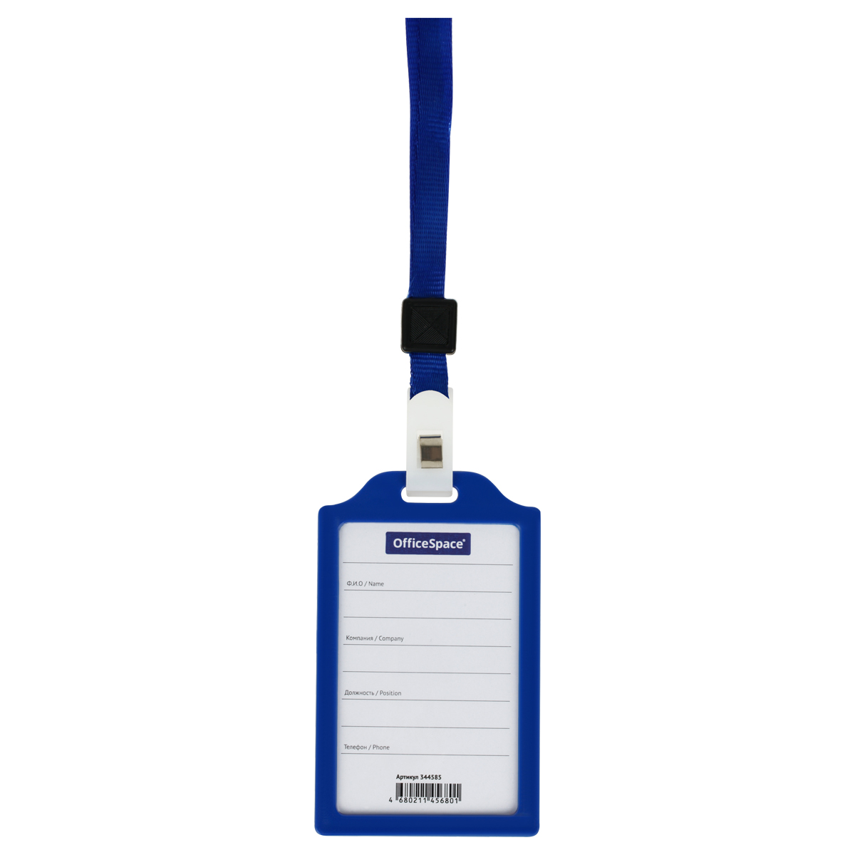 Бейдж вертикальный OfficeSpace, 63*110мм (размер вставки 55*85мм), жесткий каркас, синий, без держателя 344585