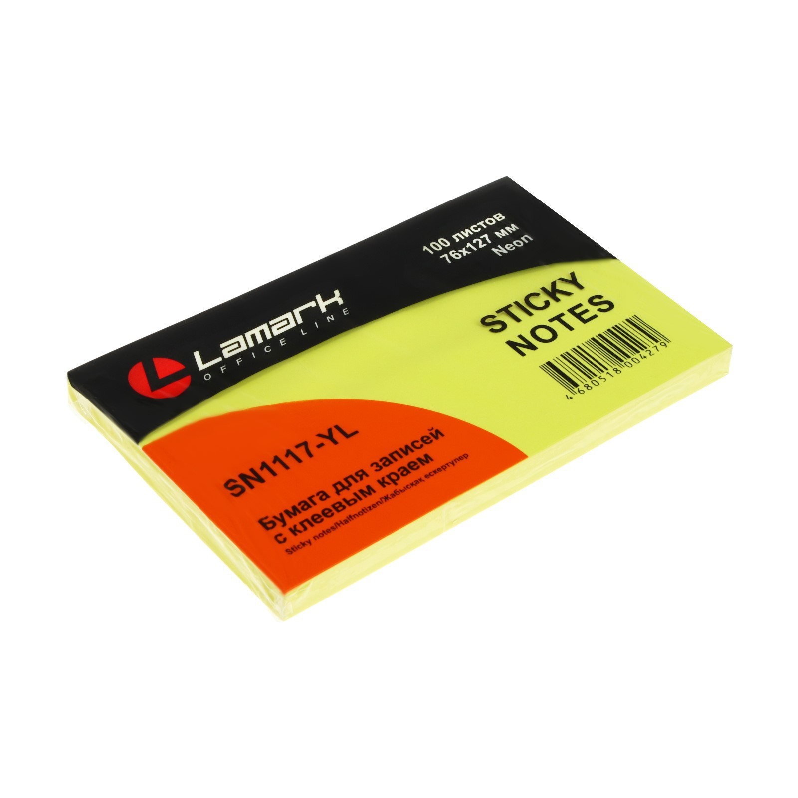 Блок самоклеющий 100л. 76х127мм НЕОН желтый LamSN0117-YL
