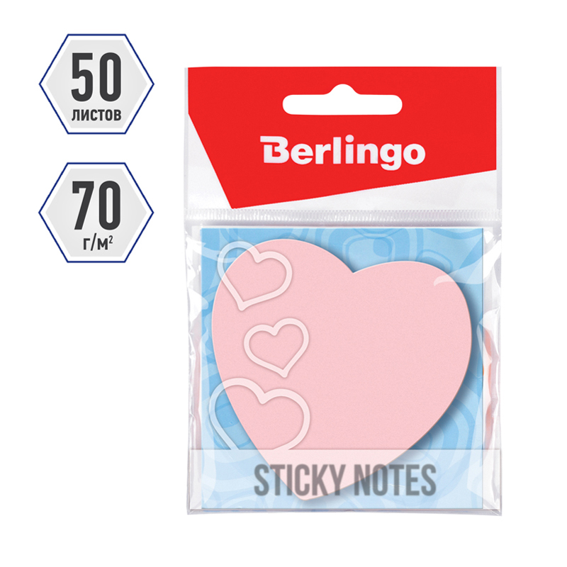 Самоклеящийся блок фигурный Berlingo "Сердце", 70*70мм, 50л, малиновый неон, 76033, 205662