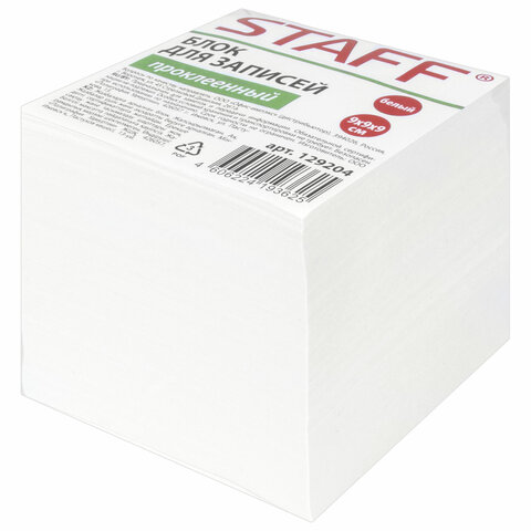 Блок для записей STAFF проклеенный, куб 9х9х9 см, белый, белизна 90-92%, 129204