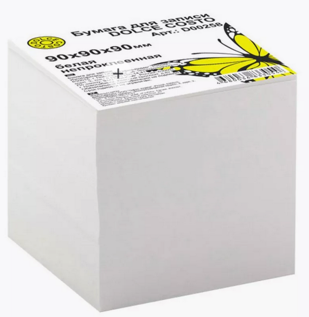 Бумага для записи DOLCE COSTO эконом 90*90*90мм, белизна 70%, плотность 55 г/м2, непроклеенная D00258