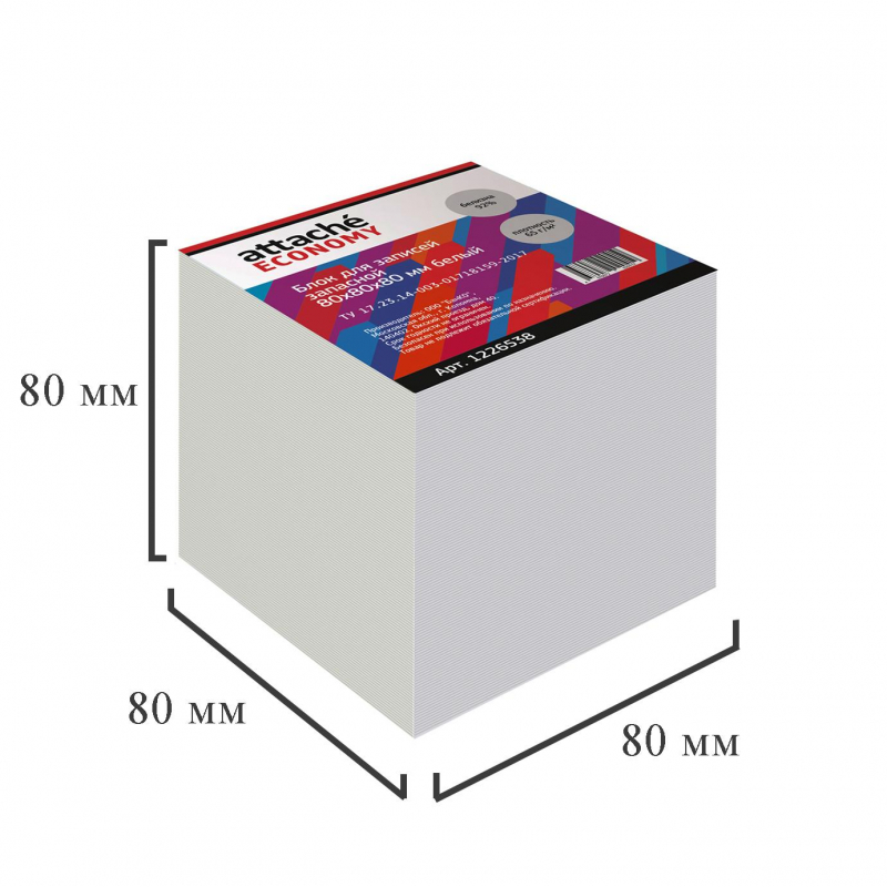 Блок для записей Attache Economy 80x80x80 мм белый (плотность 65 г/кв.м) 1226538