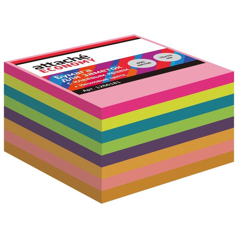 Стикеры Attache Economy 76х76 мм неоновые 8 цветов (1 блок, 400 листов) 1266181