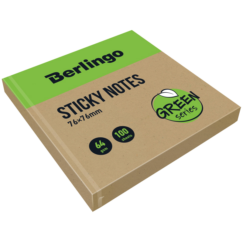 Самоклеящийся блок Berlingo "Green Series", 76*76мм, 100л, крафтовая бумага, LSn_42076, 338489