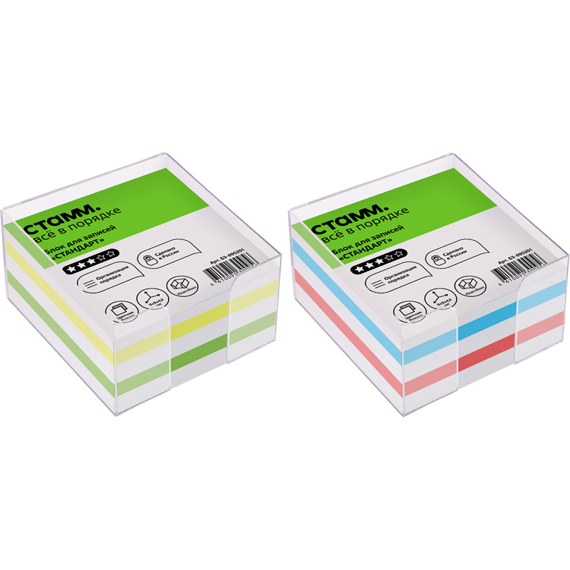 Блок для записей СТАММ "Стандарт", 9*9*4,5см, пластиковый бокс, ассорти, БЗ-995201, 331314
