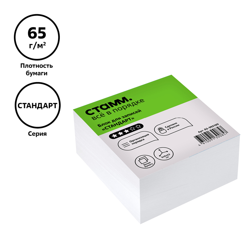 Блок для записей СТАММ "Стандарт", 9*9*4,5см, белый, БЗ-995100, 331304