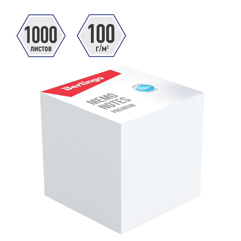 Блок для записи Berlingo "Premium" 9*9*9см, белый, 100% белизна 290211