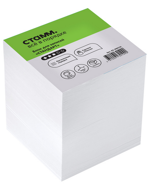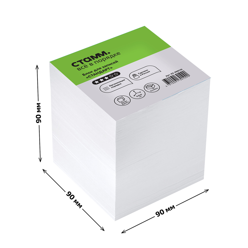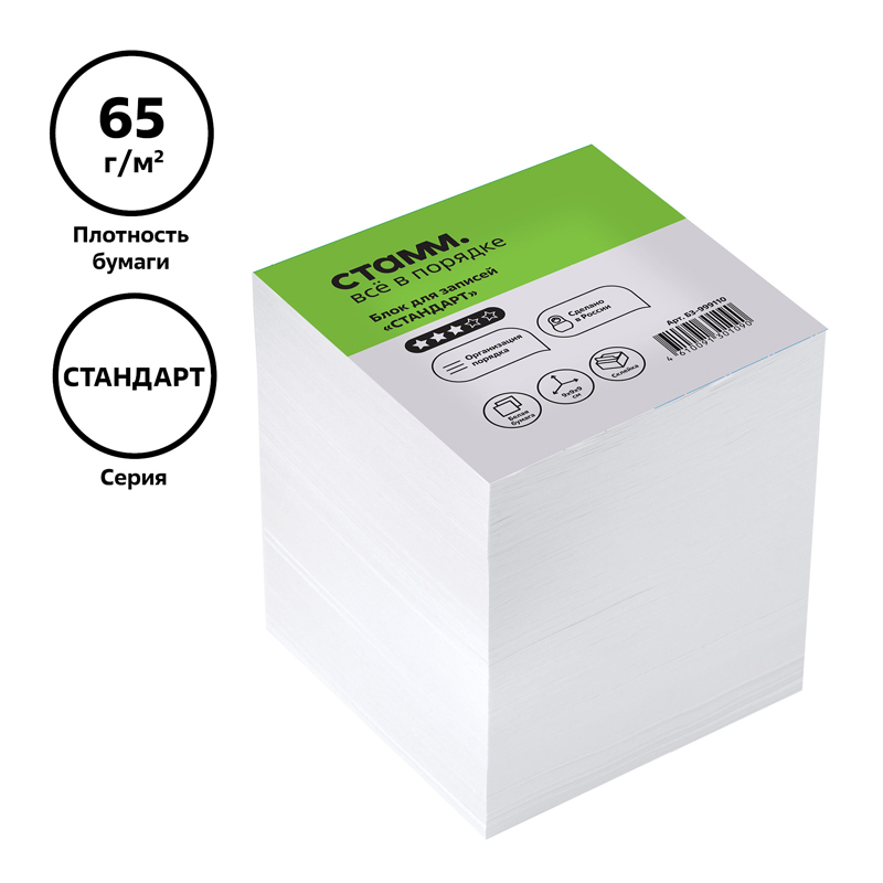 Блок для записей на склейке СТАММ "Стандарт", 9*9*9см, белый, белизна 90-92%, БЗ-999110, 386018