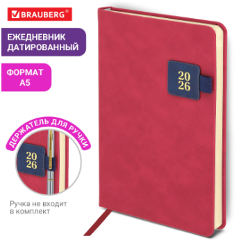 Ежедневник датированный 2026 А5 138х213 мм, BRAUBERG "Accent", под кожу, держатель, красный/синий, 117384