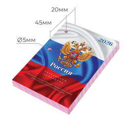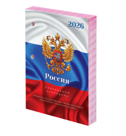 Блок календаря на 2026 год напечатан на офсетной бумаге плотностью 60 г/м2 в две краски с выделением цветом выходных и праздничных дней. Справочная информация на 160 листах: календарь на текущий месяц, часы восхода и захода солнца, долгота дня, лунный календарь, праздники.
