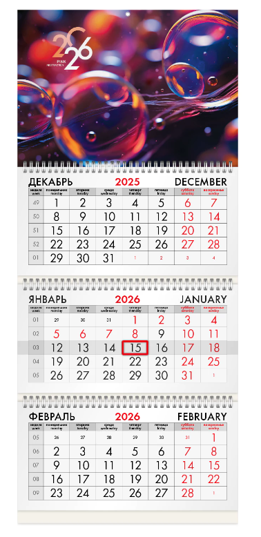 - Тип календаря: квартальный на 3 гребнях