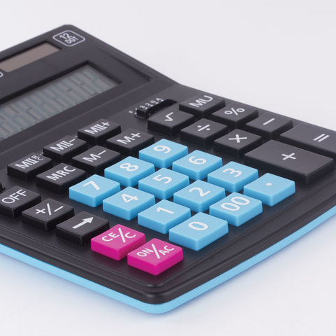 Калькулятор настольный STAFF PLUS STF-333-BKBU ( 200x154 мм) 12 разрядов, ЧЕРНО-СИНИЙ, 250461