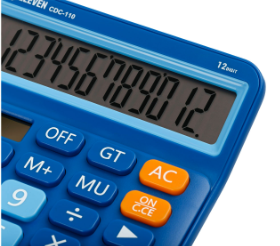 12-ти разрядный настольный калькулятор Eleven CDC-110-BL предназначен для выполнения арифметических операций. Размер калькулятора – 125*160*28 мм, вес – 140,9 г, цвет – синий. Оптимальный набор функций поможет автоматизировать расчёты: функция Grand Total (общая сумма), коррекция последнего введенного значения, расчёт наценки, кнопка «00». Двойное питание (солнечная батарея + батарея LR1130) и автоматическое отключение увеличивают срок службы. Упакован в картонную коробку. Гарантия – 5 лет.