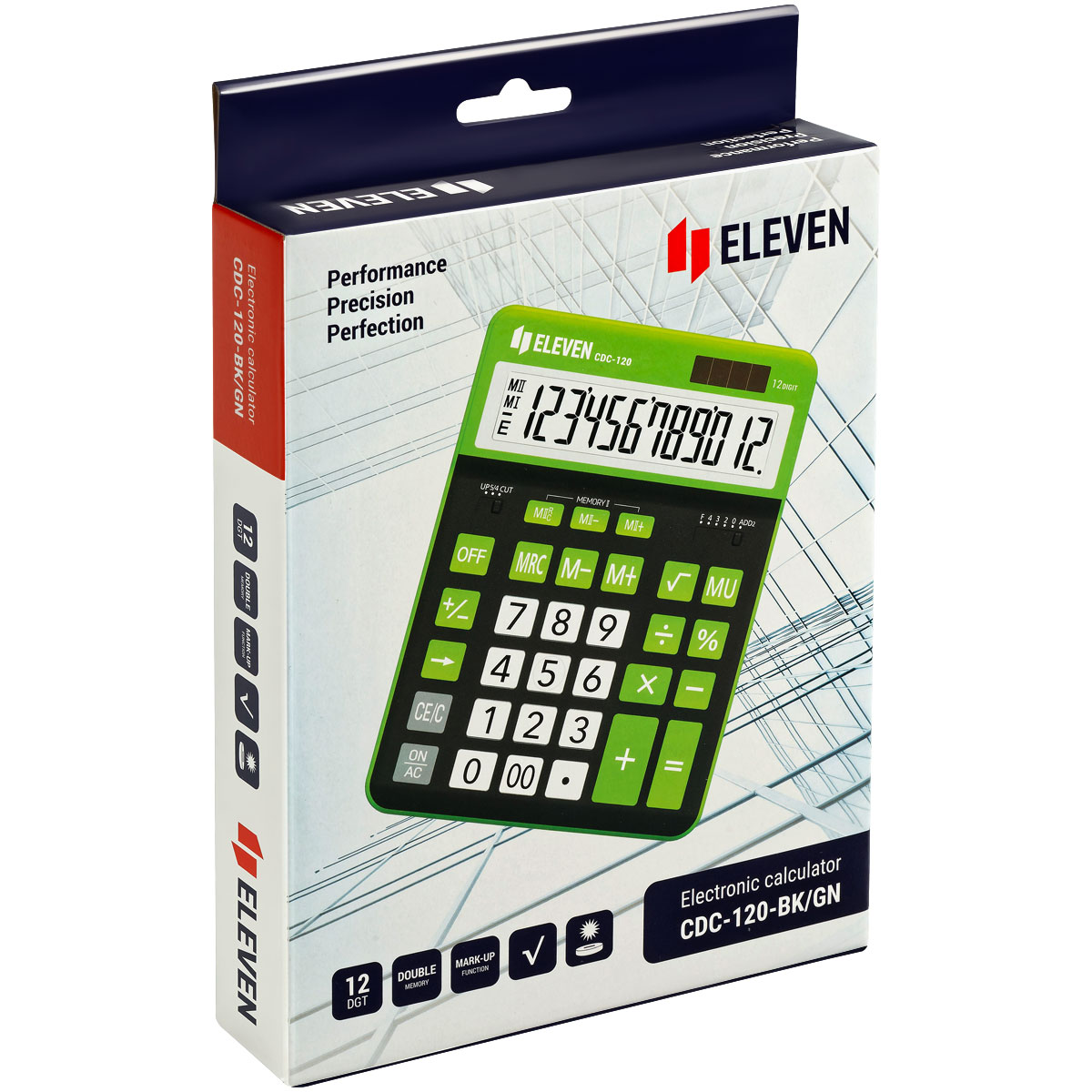 12-ти разрядный настольный калькулятор Eleven CDC-120-BK/GR предназначен для выполнения арифметических операций. Размер калькулятора – 155*206*38 мм, вес – 230,9 г, цвет – черный/салатовый. Станет незаменимым помощником в офисе, школе и дома. Оптимальный набор функций поможет автоматизировать расчёты: коррекция последнего введенного значения, расчёт наценки, кнопка «00», двойная память. Двойное питание (солнечная батарея + батарея LR44) и автоматическое отключение увеличивают срок службы. Упакован в картонную коробку. Гарантия – 5 лет.