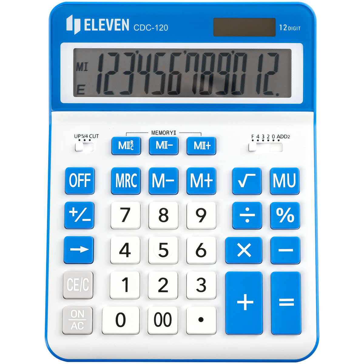 12-ти разрядный настольный калькулятор Eleven CDC-120-WH/NV предназначен для выполнения арифметических операций. Размер калькулятора – 155*206*38 мм, вес – 230,9 г, цвет – белый/тёмно-синий. Незаменимый помощник в офисе, школе и дома. Оптимальный набор функций поможет автоматизировать расчёты: коррекция последнего введенного значения, расчёт наценки, кнопка «00», двойная память. Двойное питание (солнечная батарея + батарея LR44) и автоматическое отключение увеличивают срок службы. Упакован в картонную коробку. Гарантия – 5 лет. • Разрядность: 12; • Тип питания – двойное (солнечная батарея/батарейка LR44); • Клавиша «00».