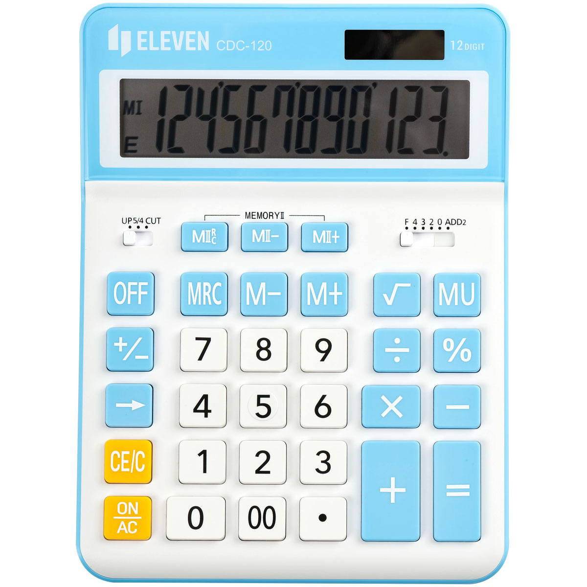 12-ти разрядный настольный калькулятор CDC-120-WH/CY предназначен для выполнения арифметических операций. Размер калькулятора – 155*206*38 мм, вес – 230,9 г, цвет – белый/синий. Незаменимый помощник в офисе, школе и дома. Оптимальный набор функций поможет автоматизировать расчёты: коррекция последнего введенного значения, расчёт наценки, кнопка «00», двойная память. Двойное питание (солнечная батарея + батарея LR44) и автоматическое отключение увеличивают срок службы. Упакован в картонную коробку. Гарантия – 5 лет. • Разрядность: 12; • Тип питания – двойное (солнечная батарея/батарейка LR44); • Клавиша «00».