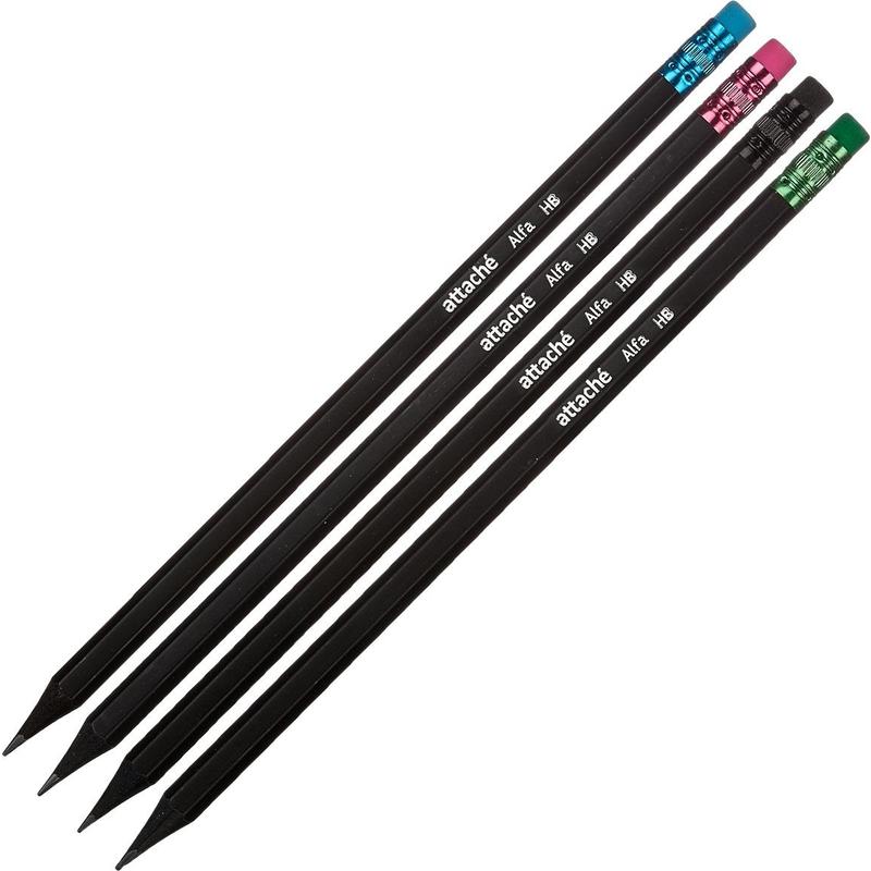 Карандаш чернографитный Attache Alfa первый помощник для выполнения проектно-конструкторских работ, позволяет сделать легкий набросок, быстрый стремительный рисунок или нарисовать полноценную картину. Карандша имеет шестигранный деревянный корпус. Многослойное лаковое покрытие с шелковистым эффектом. Матовый черный цвет корпуса подчеркивается ярким ободком и ластиком, цвет ластика в ассортименте. Поставляется заточенным. Твердость грифеля - HB. Легко затачивается.