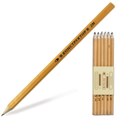 Карандаш чернографитный без ластика 2М, корпус деревянный КРАСИН "Конструктор" 180207, 346214