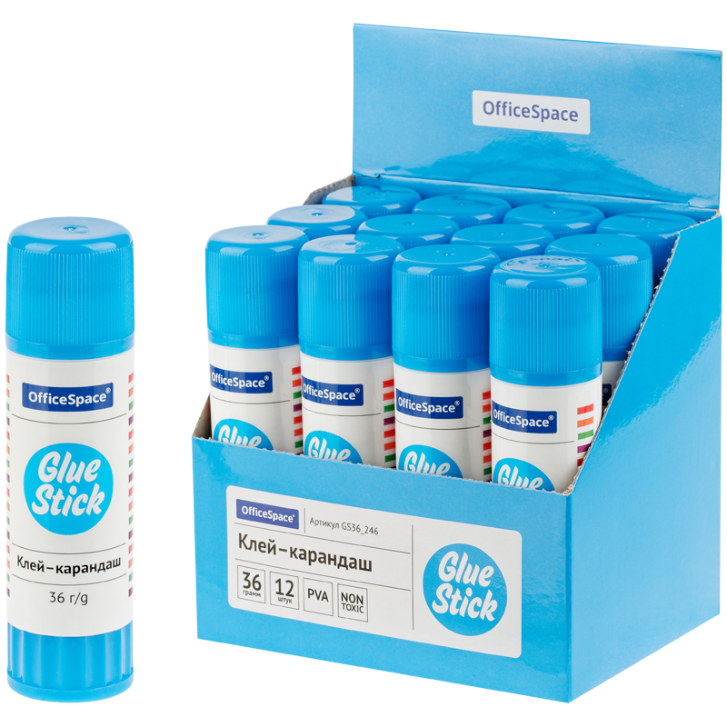 Клей-карандаш OfficeSpace, 36 г, дисплей GS36_246, 158724