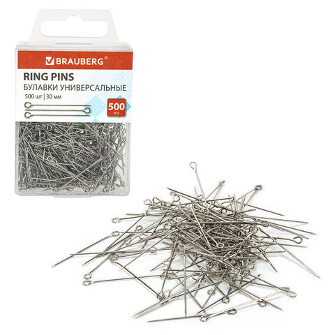 Булавки универсальные с головками-петельками BRAUBERG, 30 мм, 500 штук, в пластиковой коробке, 271319