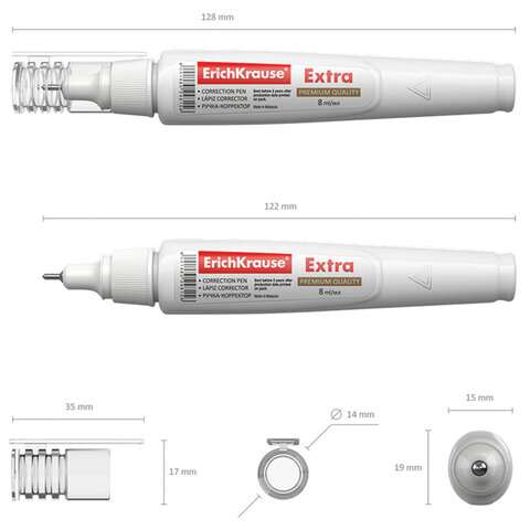 Ручка-корректор ERICH KRAUSE применяется для аккуратного и точного исправления печатного и рукописного текста. Металлический шарик внутри флакона обеспечивает однородность корректирующей жидкости. Инструкция по работе с корректирующей ручкой: - Корректирующая ручка оснащена клапанным механизмом, и подача жидкости осуществляется с помощью нажатия на наконечник ручки. - Корректирующую ручку перед использованием ОБЯЗАТЕЛЬНО необходимо встряхнуть (в корпусе ручки находится металлический шарик). - Наконечник ручки необходимо прижать к поверхности, чтобы началась подача жидкости. - На корпус ручки не следует оказывать повышенное физическое давление, за исключением случаев, когда ручкой давно не пользовались.
