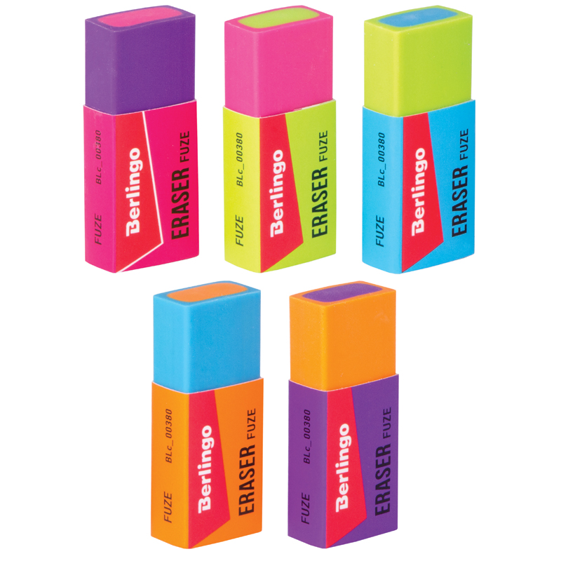 Ластик Berlingo "Fuze", цвета ассорти, 50*20*11мм, BLc_00380, 281896
