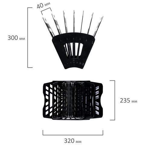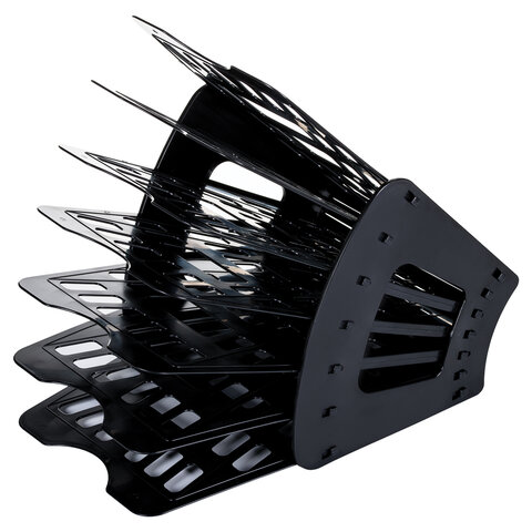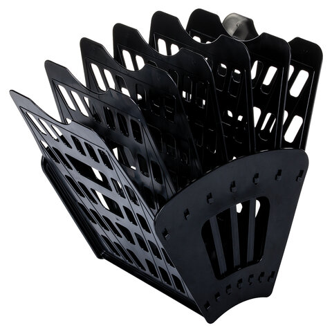 Лоток для бумаг веерный BRAUBERG "Basic" 7-ми секционный, 6 отделений, сетчатый, черный, 237019
