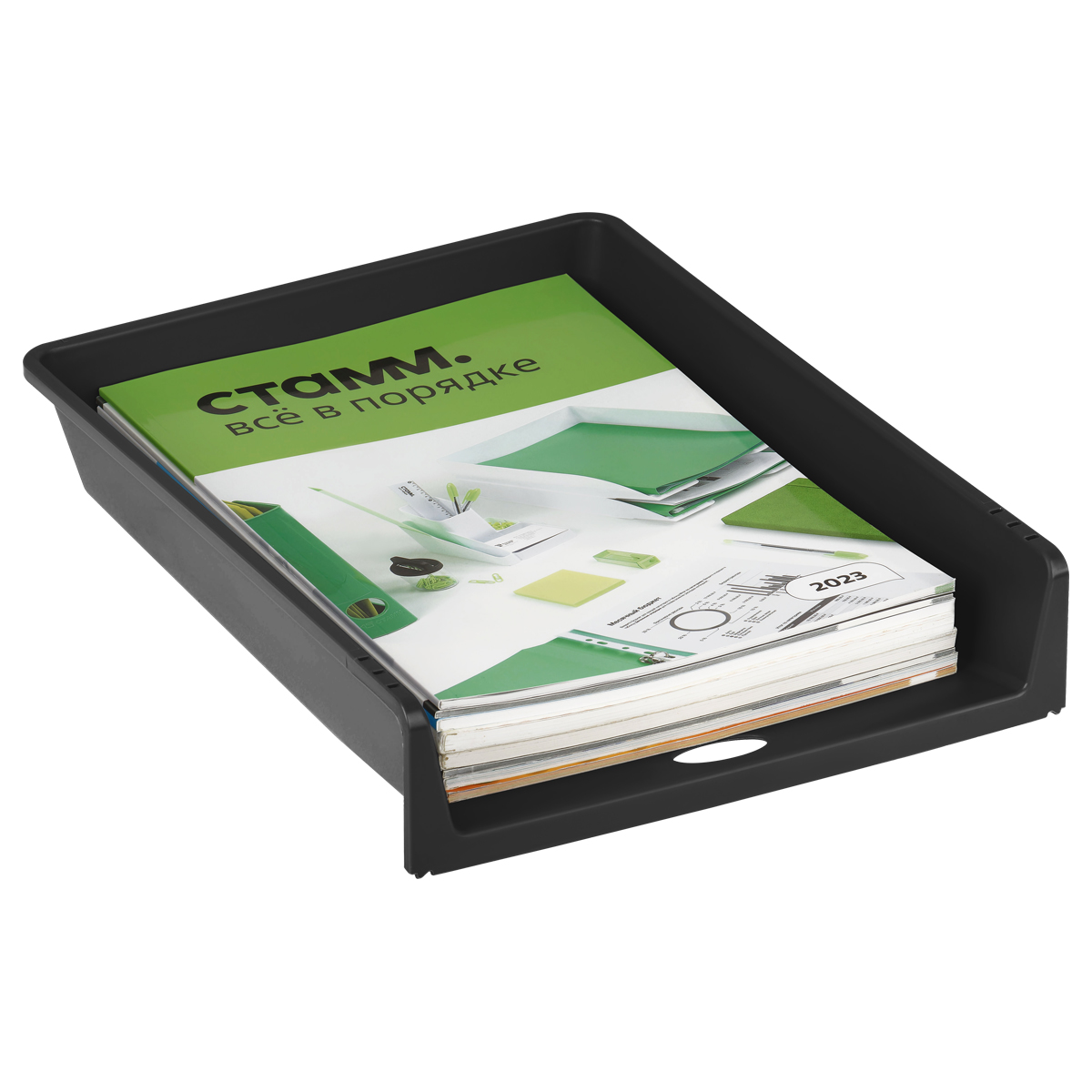 Лоток для бумаг горизонтальный СТАММ "Базис", черный, ЛТГ-31339, 351620