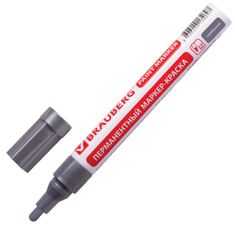 Маркер-краска лаковый 2-4 мм, серебряный, нитро-основа, алюминиевый корпус, BRAUBERG (БРАУБЕРГ), 150875