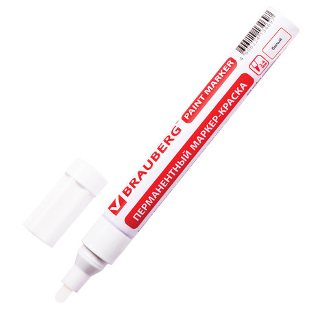 Маркер-краска лаковый BRAUBERG предназначен для маркировки различных материалов в промышленных условиях: бетона, дерева, стекла, металла, резины, пластика. Также подходит для творчества и декорирования.