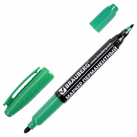 Маркер перманентный (нестираемый) BRAUBERG двусторонний, круглый наконечник 2-4 мм, зеленый, 150839
