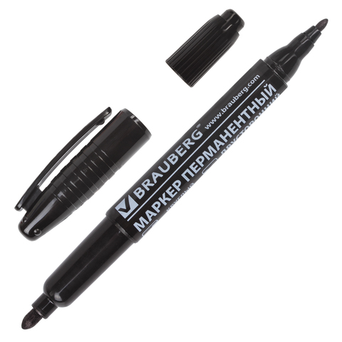 Маркер перманентный (нестираемый) BRAUBERG двусторонний, круглый наконечник 2-4 мм, черный, 150836