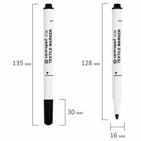 Маркер для ткани ЧЕРНЫЙ CENTROPEN "Textile Marker", круглый наконечник, 1,8 мм, 2739, 5 2739 9212 151102