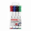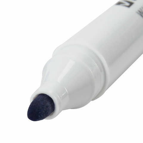 4 цвета в наборе: черный, красный, синий, зеленый. Круглый пластиковый корпус имеет диаметр 15 мм. Наконечник круглой формы обеспечивает толщину линии письма 3 мм, что позволяет писать крупным шрифтом, который будет хорошо виден. Основа чернил - спиртовая. Чернила быстро высыхают и не оставляют разводов, легко стираются сухой губкой. Изделие не перезаправляется. Цвет колпачка и клипа соответствует цвету чернил.