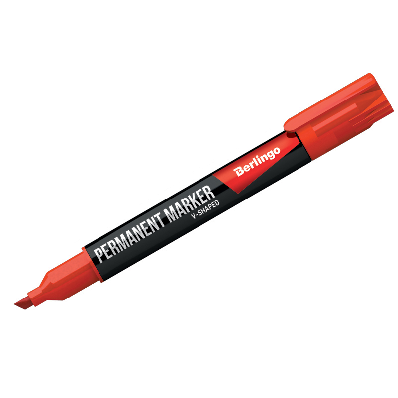 Маркер перманентный Berlingo "Multiline PE400" красный, скошенный, 0,5-4мм