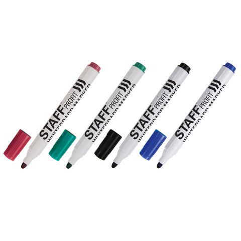 Маркеры стираемые для белой доски НАБОР 4 ЦВЕТА, STAFF "Profit" WBM-644, 2,5 мм, 151648