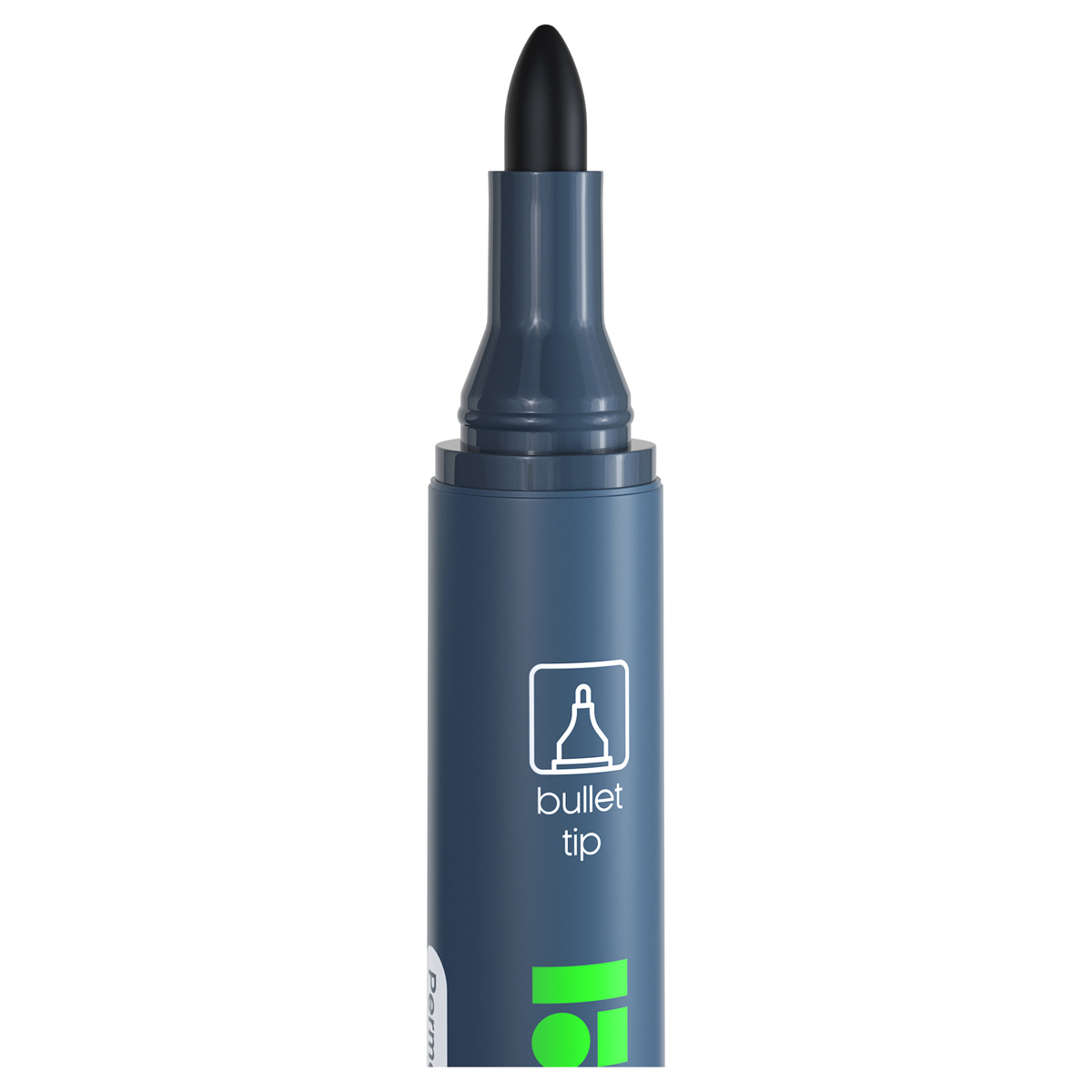 Перманентный маркер на спиртовой основе. Предназначен для письма на большинстве поверхностей: бумаге, коже, пластмассе, металле, резине, ткани. Устойчив к стиранию, воде, свету, температурным и атмосферным воздействиям. Толщина линии 3мм. Цвет чёрный.